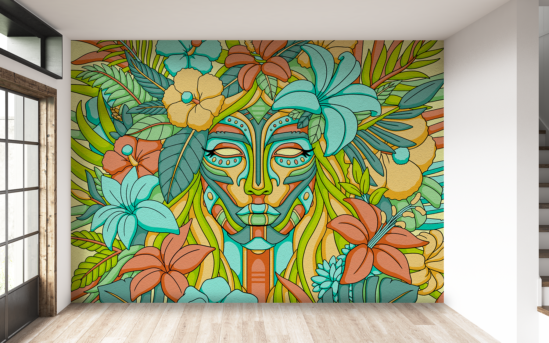 Shamanic Mural Mock-Up for an indoor setting